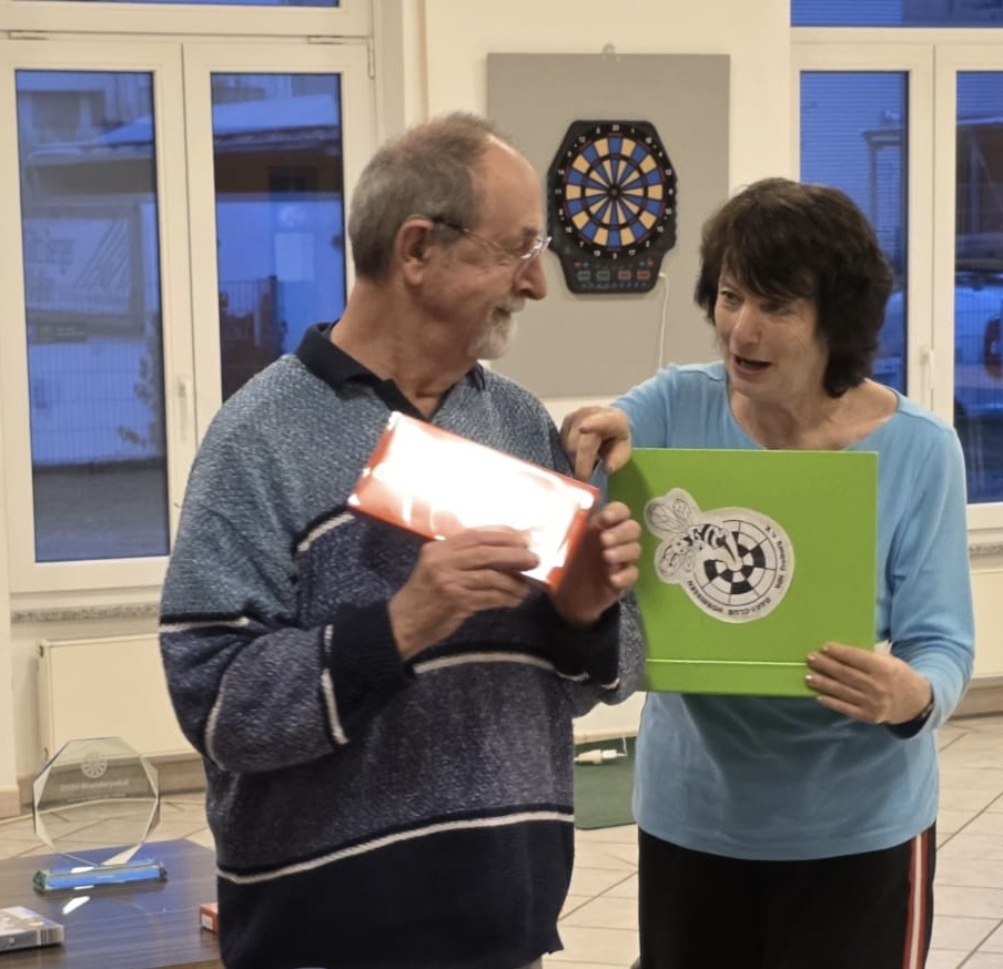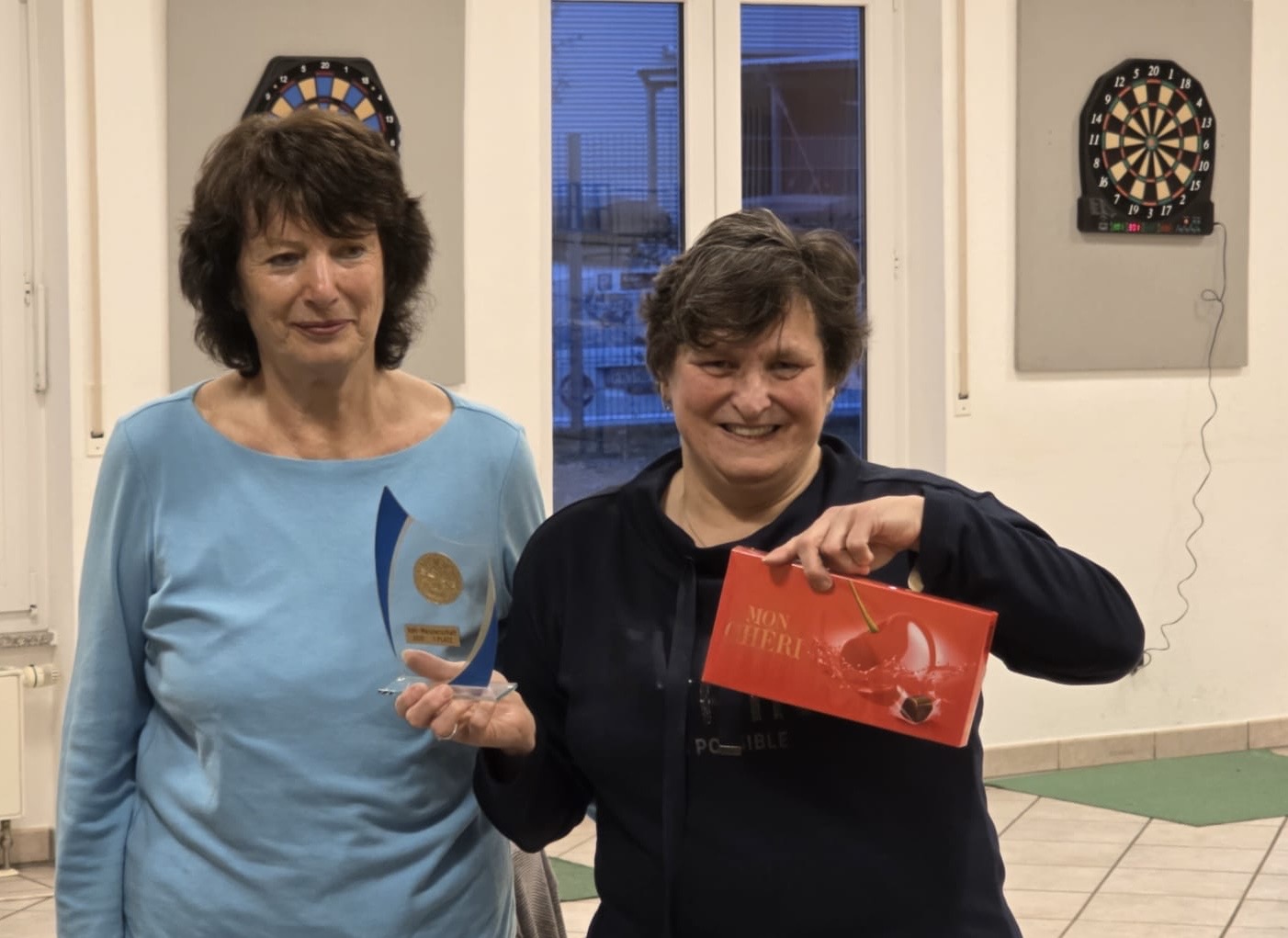 Im Haus der Hörgeschädigten fand zum ersten Mal eine interne Dartmeisterschaft unseres Vereines statt. Daran nahmen zehn Teilnehmer, darunter vier Frauen, teil. Dazu gab es wie immer Kaffee und Kuchen, was für eine lockere Atmosphäre sorgte. Vier Spieler, die die gleichen höchsten Punkte erzielten, mussten wieder spielen, um den ersten, zweiten, dritten und vierten Platz zu gewinnen. Zu unserer Überraschung erzielte Anja Schäfer den 1. Platz, die erst in diesem Jahr zu unserer Dartgruppe gestoßen ist. Den 2. Platz belegte Werner Latzkow, den 3. Platz Michael Kolar und den 4. Platz Martin Fischer. Den drei Gewinnern wurden Pokale überreicht, während die übrigen Spieler einen Trostpreis bekommen haben. So konnten wir alle gut gelaunt den Wettkampf ausklingen lassen.
